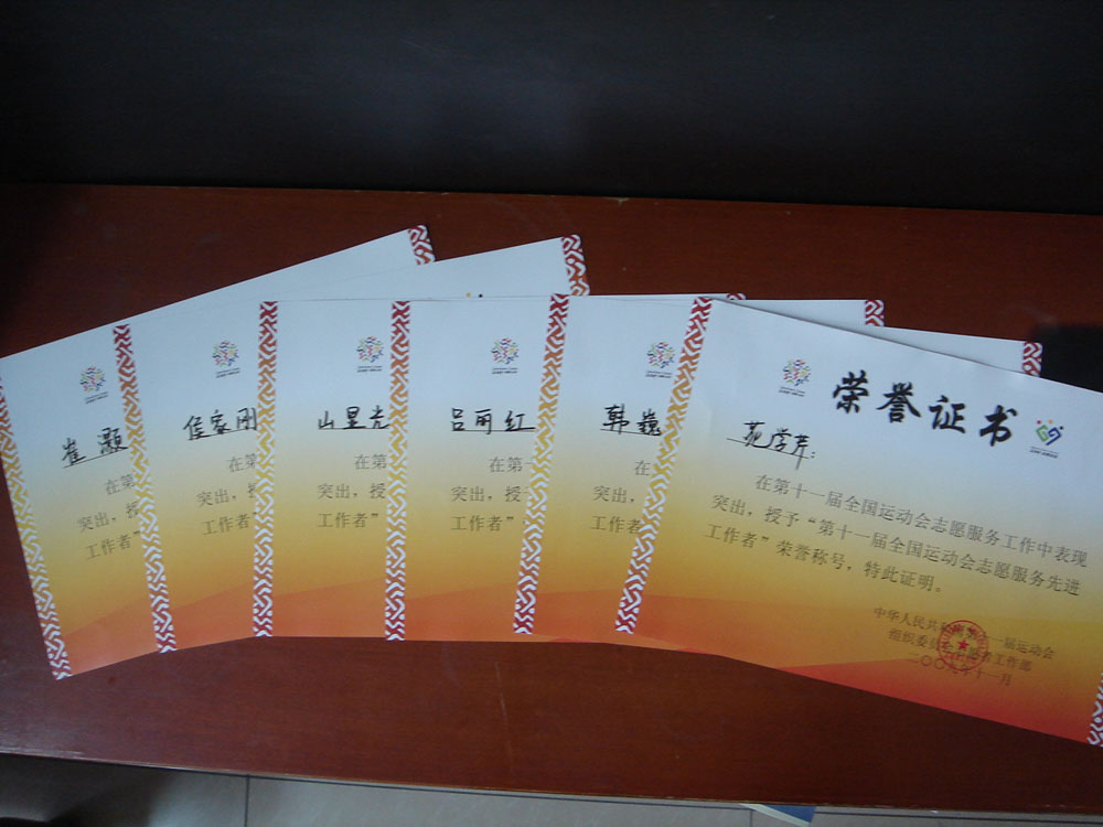由于工作业绩突出,我校被十一届全运会组委会评为“第十一届全国运动会组织工作先进集体”,校团委获得“第十一届全国运动会志愿服务突出贡献奖”,3人获“第十一届全国运动会志愿服务先进工作者”荣誉称号(记三等功奖励),94人获“第十一届全国运动会志愿服务优秀志愿者”荣誉称号(记三等功奖励);2人获“十一运会组委会志工部优秀工作者”荣誉称号,6人获“十一运会组委会志工部先进工作者”荣誉称号,45人获“十一运会组委会志工部优秀志愿者”荣誉称号,87人获“十一运会组委会志工部先进志愿者”荣誉称号。