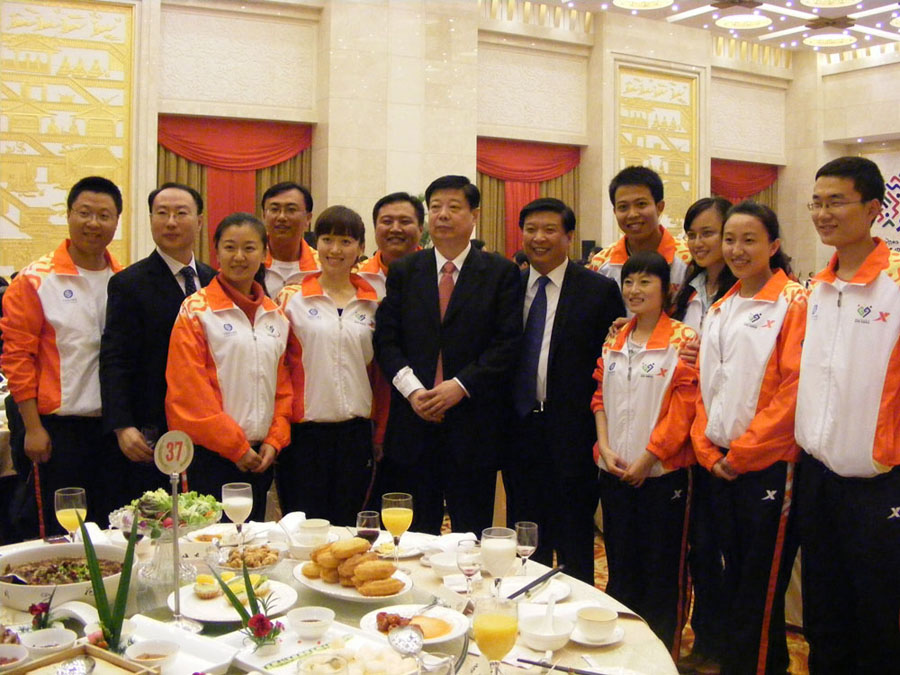 我校高度重视十一运会志愿者工作,成立了由校领导担任组长、相关部门领导参与的十一运会志愿者工作领导小组,各部门、各学院通力协作、措施到位,做到了周密组织、科学部署、强化保障、突出特色。在整个志愿培训和服务过程中,我校志愿者勤勉踏实、顾全大局、勇于担当、无私奉献,通过热心、周到、细致、得体的工作,为全运会提供了全方位、高质量的服务,充分展现出了我校大学生自信、热情、奉献、进取的优秀品质,为学校赢得了广泛的赞誉,受到了组委会和各竞委会的一致好评,为全运会的胜利召开贡献了青春的力量,志愿者的事迹还多次被媒体报道。校团委张文斗副书记作为全省10名志愿者代表之一参加了由省委省政府、国家体育总局等举办的十一运会欢送暨答谢宴会,受到有关领导的亲切接见。