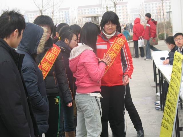 今年3月5日是第10个“中国青年志愿者服务日”,当日在校团委的指导下,我校志愿者服务总队承办的“服务全运 志愿传承”志愿者服务日活动分别在一餐和三餐前广场举行。