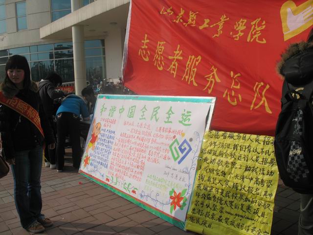 活动以服务十一届全运会,传承奥运文明,弘扬志愿精神为主旨,将志愿服务宣传与志愿活动开展结合起来,围绕着本学期全运会志愿者选拔、走访敬老院、高考志愿咨询、助残服务、戒烟健康宣传五个重点志愿服务工作,分别以班级、宿舍、个人及社团为主体,鼓励大家积极参与志愿服务。活动中,志愿者们热情地为广大同学介绍了全运会志愿服务内容和志愿者招募工作的进展情况。同时介绍了走访敬老院,爱心助残及高考咨询等志愿服务活动,并接受这些志愿服务活动的现场报名。活动现场即收到报名申请近千份,体现了我校大学生参与志愿活动的热情。