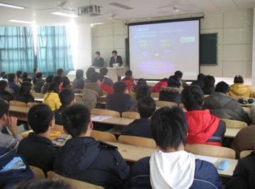 报告会上,平野先生首先向同学们介绍了荒川化学工业集团的概况。随后,他分别就胶乳型松香施胶剂和PAM系纸力剂的开发过程及改良过程作了介绍。平野先生的报告由浅入深、结构紧凑,提高了同学们对当今造纸助剂发展情况及未来发展趋势的认识,对同学们今后的学习具有很大帮助。