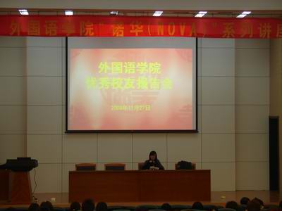 11月27日晚,外国语学院“诺华(NOVA)”系列讲座在行政楼报告厅圆满结束。外国语学院01级优秀校友郭晓娇为该学院05、06、07级400多名同学作了精彩的报告。