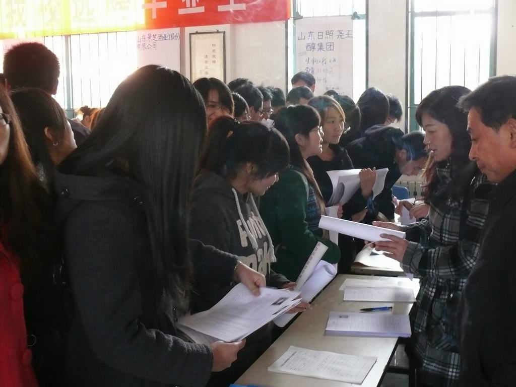 为切实做好广大毕业生的就业工作,为用人单位招贤纳才搭建平台,11月17日上午,由学生处毕业生就业指导中心主办,食品与生物工程学院团总支承办的食工类专场招聘会在1号教学楼一楼大厅成功举办。来自山东稻香园食品公司、古贝春酒业公司、山东柠檬生化有限公司等近三十家企业和400余名毕业生参加了专场招聘会。此次招聘会涉及生物工程、食品科学、生物技术、经济管理、机电一体化等多个专业,给同学们提供了300多个就业岗位。