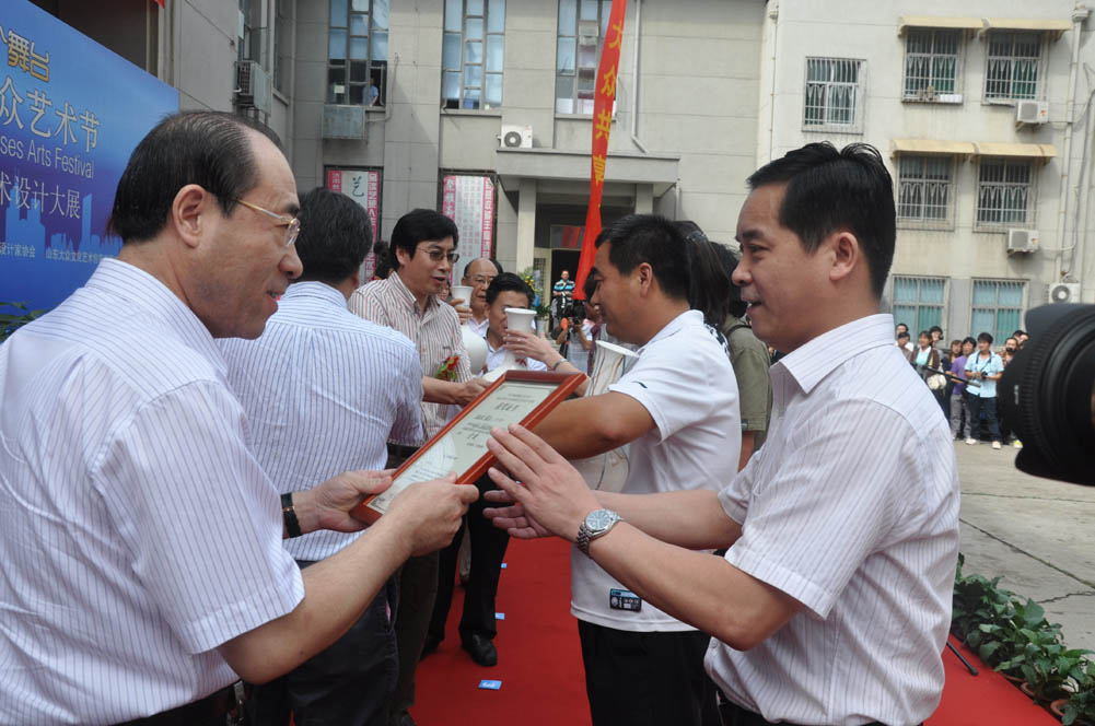 9月10日,“海瓷艺术杯・2010首届山东艺术设计大展”颁奖典礼在山东省美术馆隆重举行。省政协原副主席、省美术家设计协会名誉主席王久祜、省文联党组书记于钦彦、我校领导闫秉科、王光芝、周有波及省文联、省美术家设计协会、兄弟高校的有关领导出席颁奖典礼并现场参观了展览。