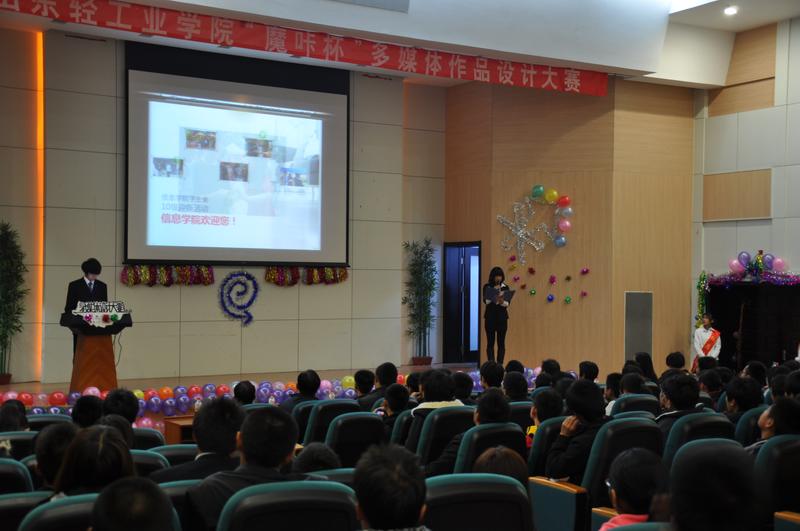 11月2日晚,我校第十九届科技文化艺术节之“魔咔杯我的心动生活”多媒体设计大赛决赛在行政楼报告厅隆重举行。该活动由校团委主办,信息学院团总支承办,旨在丰富校园文化生活,促进广大青年学生健康成长。校团委、教务处负责人,济南智用动漫科技有限公司总经理张斌先生出席了本次活动。党委组织部、宣传部、学生处、现代教育技术中心等部门相关负责同志担任此次比赛的评委,各学院团总支老师及300多学生共同观看了比赛。