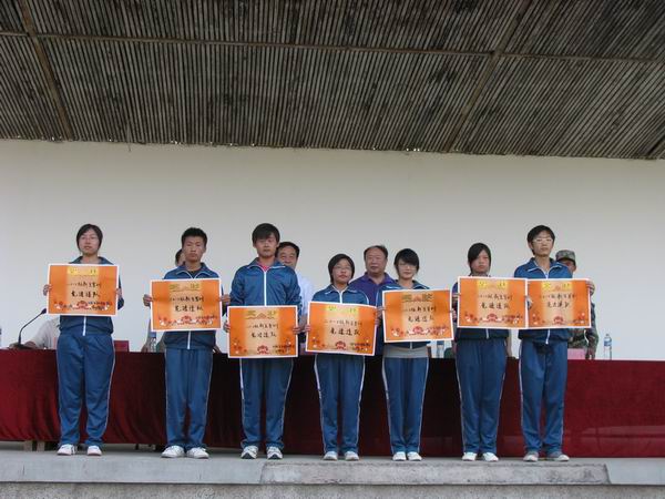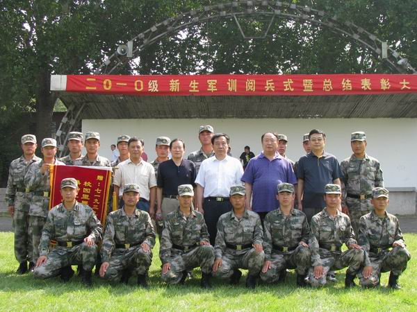 大会上,匡书记发表了热情洋溢的讲话,他首先代表学院领导和师生对全体教官表示了感谢,并向2010级同学表示了亲切的问候和热烈的祝贺。他高度赞扬了同学们在军训期间流血流汗不流泪的精神,同时也希望同学们将军训成果融入到今后的学习与生活中,尽快了解大学生活,适应大学生活,做一名全面发展的大学生。随后,李院长代表学院向部队赠送锦旗;陈书记宣读了军训先进连队和军训标兵名单。