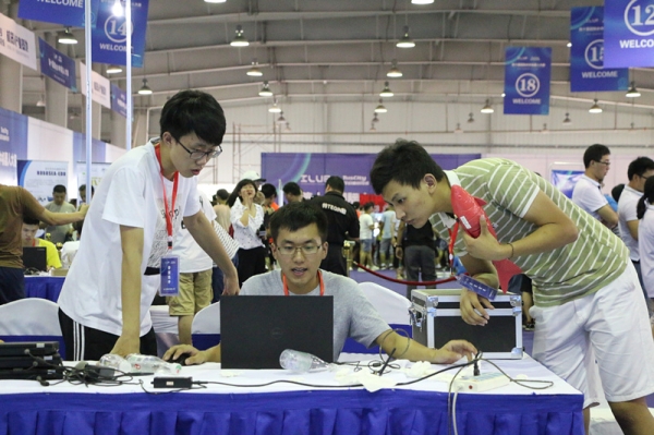 我校参赛选手调试机器