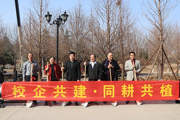 会上,学生代表刘明星宣读了“3·12植树节”师生倡议书,会后,校企双方在图书馆西侧共同植下纪念树。