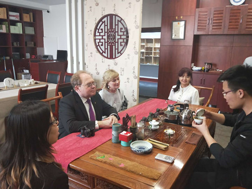 29日上午,格里什琴科校长一行与国际处相关人员就申请中外合作办学机构事宜进行了详细沟通,并参观了齐鲁陶瓷玻璃科学与艺术博物馆、啤酒中心和酒文化博物馆。