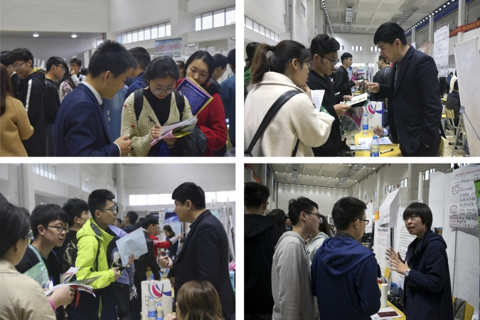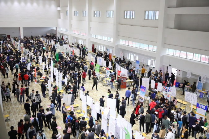 本次招聘会共吸引了1000余名毕业生参加,尽管人数众多,但在校区各部门的精心组织下,招聘会现场秩序井然。在招聘现场,用人单位一大早就布置好了招聘展台,宣传企业形象及用人需求。毕业生们携带精心设计的求职简历,积极踊跃地推荐自己,招聘摊位前挤满了前来应聘的毕业生。