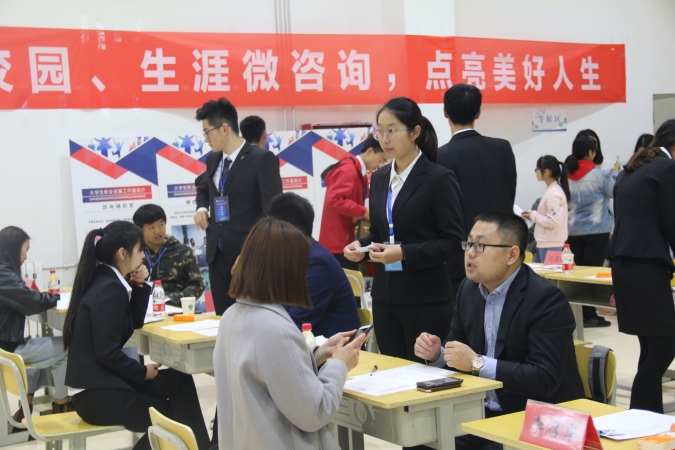 为发挥招聘会的集聚效应,提高学生对大学学业规划和未来职业规划的科学性与合理性的认识,招聘会现场还为低年级学生量身打造了“生涯微咨询”和“职场人物进校园”活动,20余名生涯咨询师和企业HR围绕自我探索、生涯规划、职业定位与决策、求职技能提升、求职心理调适等方面耐心细致的为同学们答疑解惑。