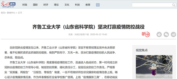 新闻报道链接:http://news.gmw.cn/2020-03/23/content_33677640.htm