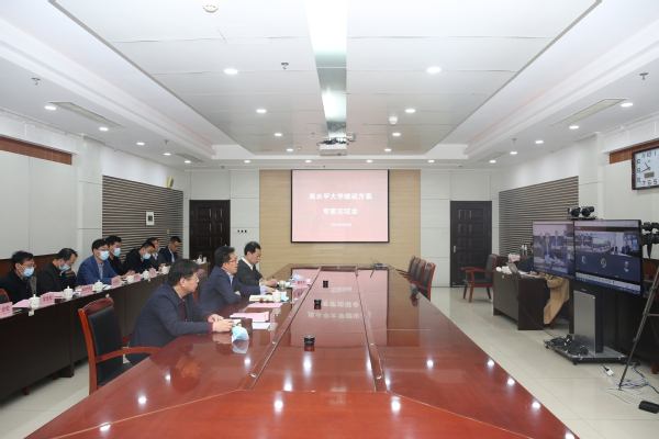 曹茂永向与会专家汇报高水平大学建设方案,从学科专业建设、人才培养模式创新、科技创新、人才队伍、成果转化与社会服务、国际交流与合作等方面详细介绍了校(院)高水平大学建设基础,分析了存在的差距,提出了整体目标与建设思路。