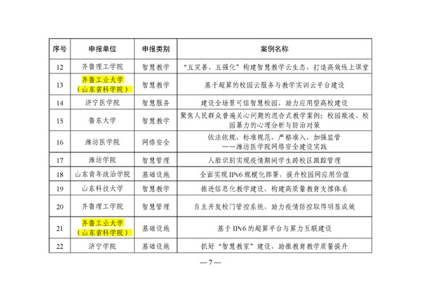 近日,山东省教育厅网络安全和信息化领导小组办公室公布了山东省教育系统信息化建设应用典型案例评选结果,齐鲁工业大学(山东省科学院)报送的《基于超算的校园云服务与教学实训云平台建设》《基于IPV6的超算平台与算力互联建设》两个案例成功入选。全省共评出教育系统信息化建设应用典型案例107项,其中本科院校共评出22项。