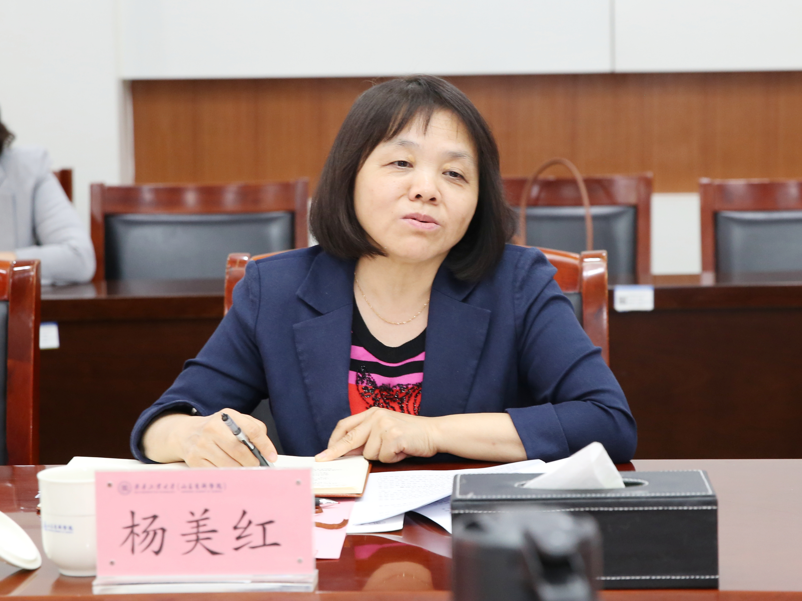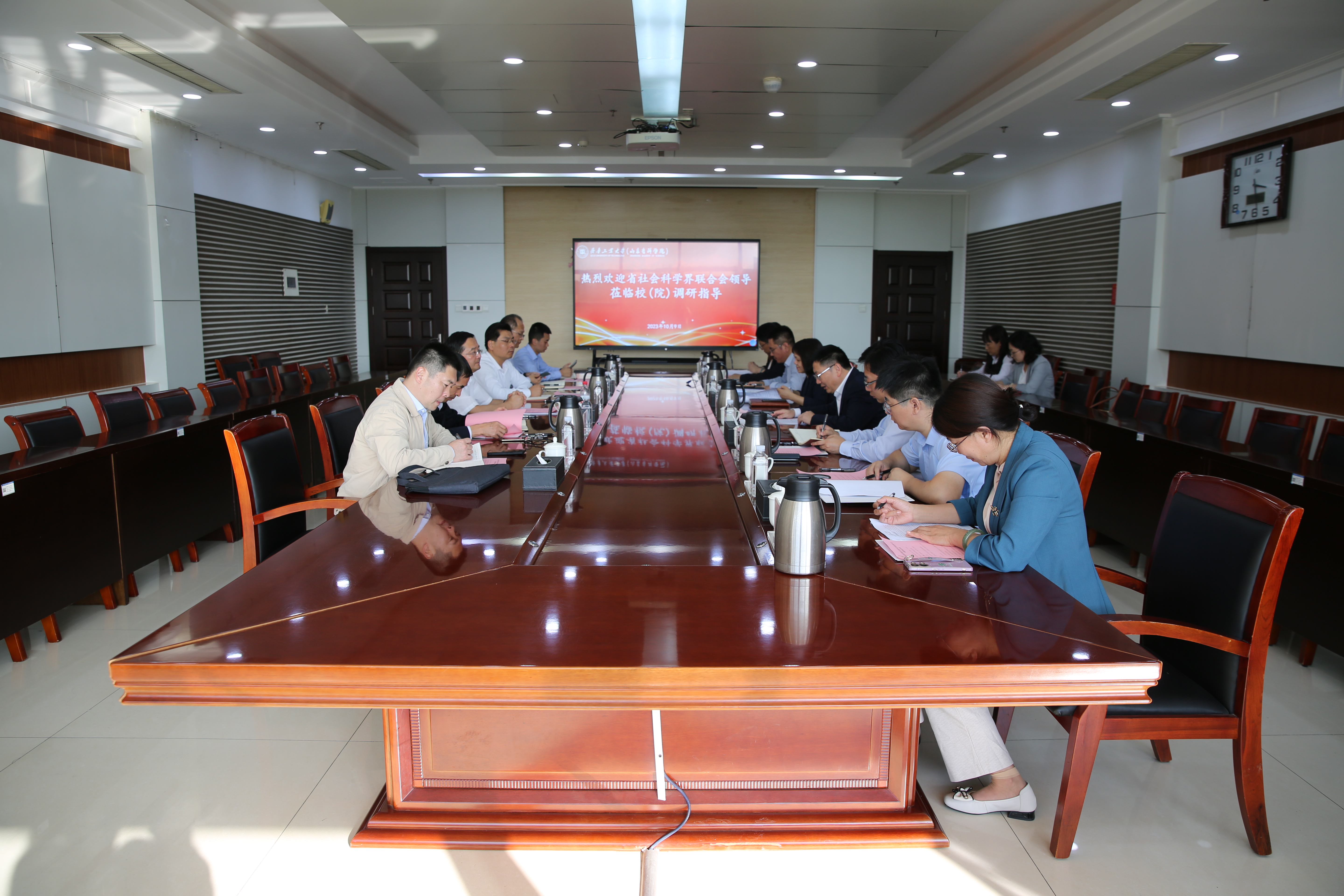 社科处(智库中心)处长贾永飞汇报了校(院)人文社科工作情况,位华、李金萍、许崇庆、舒明雷分别围绕山东红色金融精神研究与传承、上合组织区域与国别研究、山东省碳中和技术创新中心建设发展、校(院)科技创新工作进行了汇报。双方就人文社科青年人才培养、科研团队建设、重要学术活动、跨学科交叉融合研究等方面进行了研讨交流。