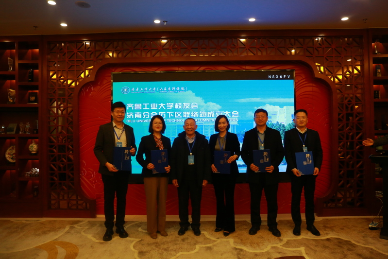 与会领导分别为联络处理事会成员颁发聘书。校友工作办公室副主任毕方智、济南分会秘书长王友德、长清区联络处会长张庆海、高新区联络处会长王宝庆分别代表校友总会及兄弟校友分会向历下区联络处的成立表示祝贺。