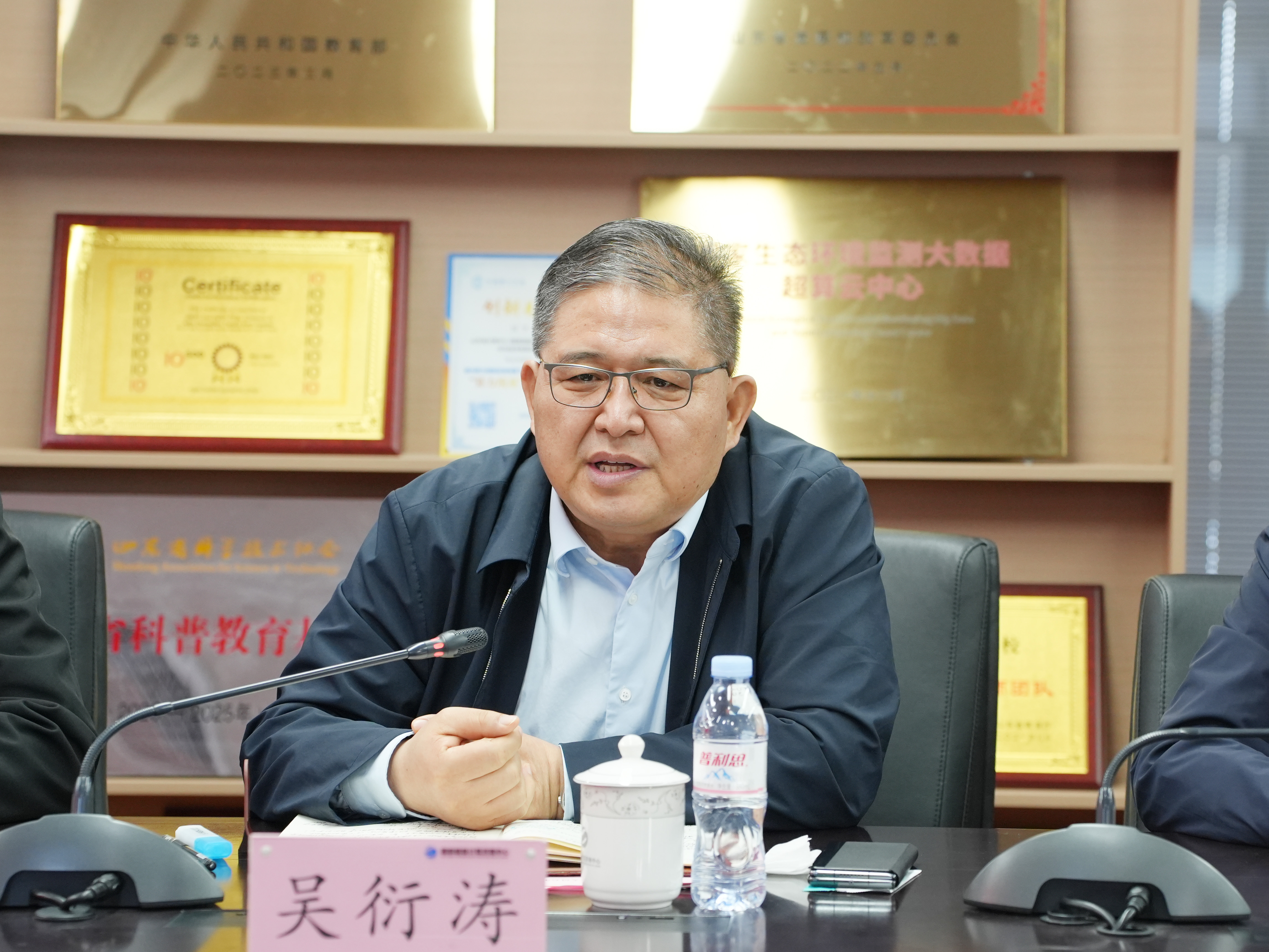 吴衍涛对各位领导、同志莅临校(院)指导工作表示热烈欢迎和诚挚感谢,并简要介绍了校(院)教育评价改革基本情况。他表示,自2017年省委省政府将齐鲁工大、省科学院整建制合并以来,校(院)紧紧抓住“产教融合、科教融汇”重大机遇,坚持“抓党建、提质量,重内涵、强学科,谋创新、促转化,补短板、扬优势,建体系、冲一流”,在人才培养、科技创新、服务社会、人才集聚、国际合作等方面打造了一定的比较优势,为校(院)各项事业高质量发展奠定了坚实基础。他强调,省委省政府印发《关于进一步推进教育评价改革工作的若干措施》以来,校(院)高度重视,成立推进教育评价改革落实工作领导小组,出台《教育评价改革实施方案(2024-2025年)》,积极探索“硬政策”向“软着陆”的有效路径,不断激发教育评价改革的内生动力。一是明确价值标准,构建教师综合评价体系;二是破除思维惯性,树立标志成果评价导向;三是遵循基本准则,守牢人才引育评价底线。他认为,教育评价是教育发展的“指挥棒”,也是人才培养的“方向盘”,有什么样的评价指挥棒,就有什么样的办学导向。下一步,校(院)将继续深入贯彻落实省委省政府、省教育厅关于教育评价改革及国家教育评价研究基地建设的意见和建议,与兄弟高校携手共进,持续深化相关领域教育评价改革,共同为推动高等教育高质量发展和教育强省建设书写工大(科院)何为的新篇章。