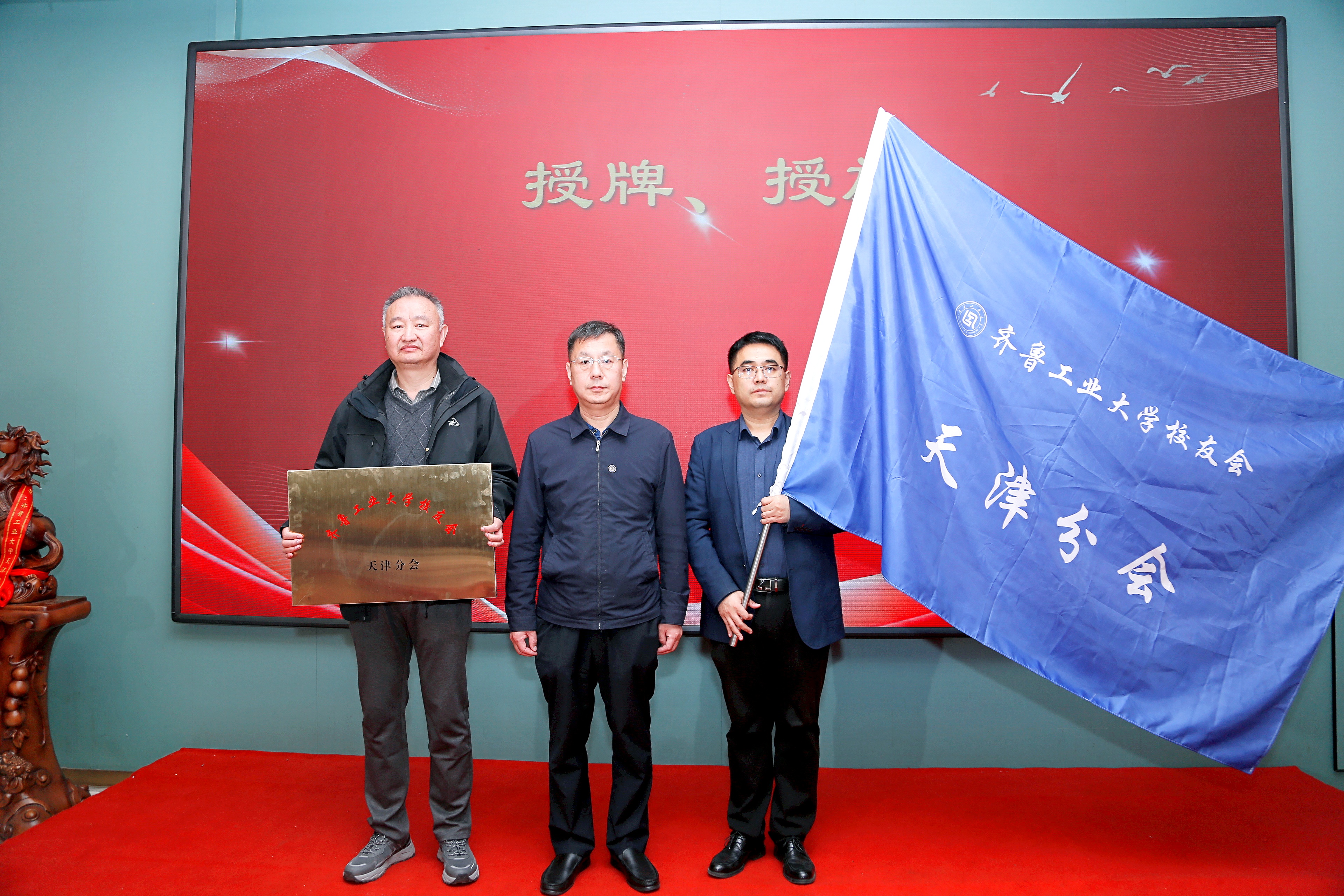 校友工作办公室副主任刘莉莉为秘书长、副秘书长颁发聘书,新任会长王岩、执行会长宫贤沣为理事颁发聘书。齐鲁工业大学北京校友会、济南校友会、东营校友会代表分别对天津校友会的成立表示祝贺,期待各地校友会加强联动、互通有无,共同搭建校友交流合作、携手共进的广阔平台。