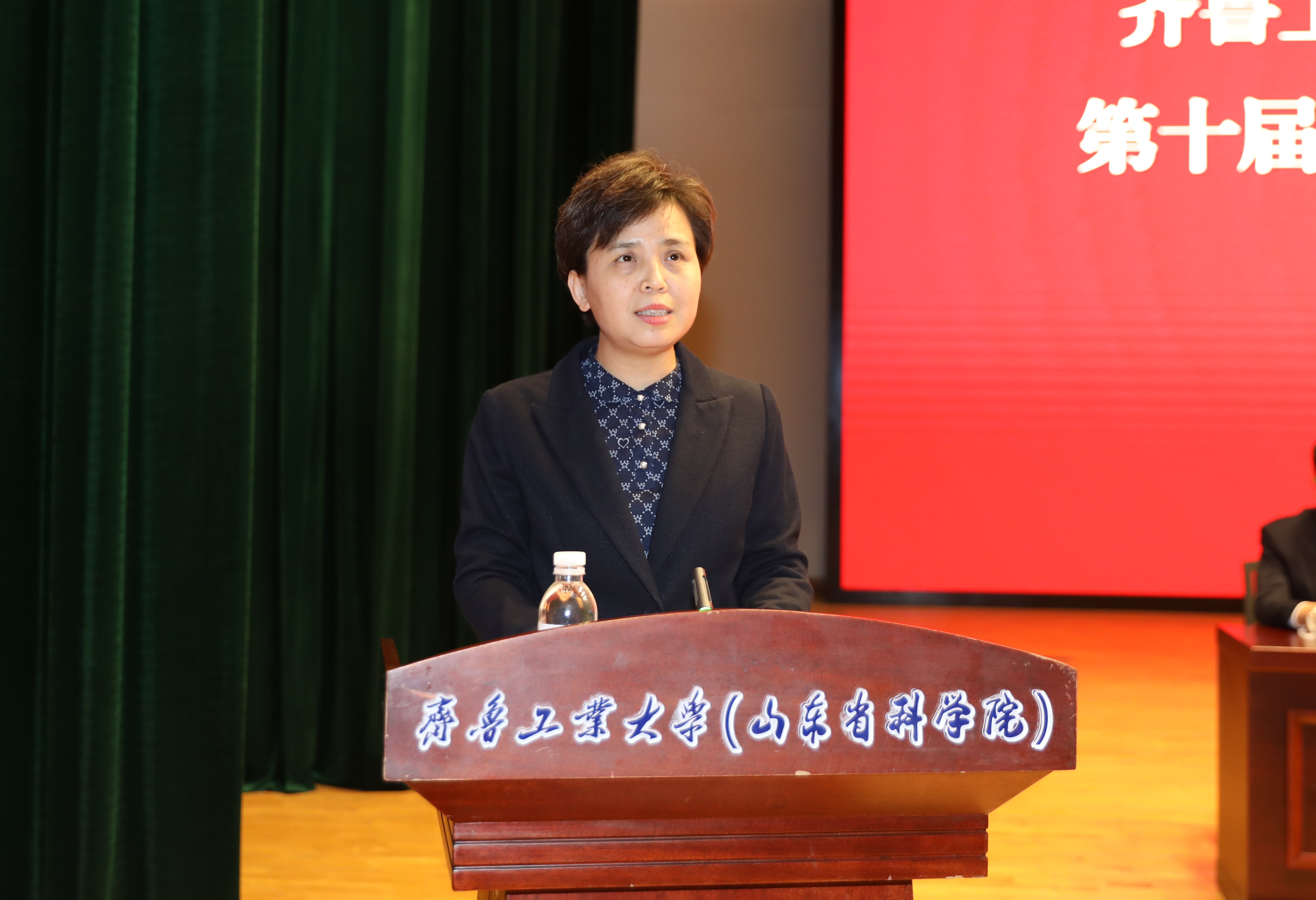 王贞代表山东省教育工会委员会向大会召开表示祝贺。她高度评价了校(院)事业发展所取得的显著成效,充分肯定了校(院)工会工作在全省教育工会系统的示范表率作用,希望齐鲁工大(省科学院)工会,牢牢把握增强政治性、先进性、群众性的发展方向,着力在旗帜鲜明守初心、固本培元聚人心、履职尽责暖民心、深化改革持恒心等“四心”上下功夫,奋力谱写新时代高校工会工作新篇章。